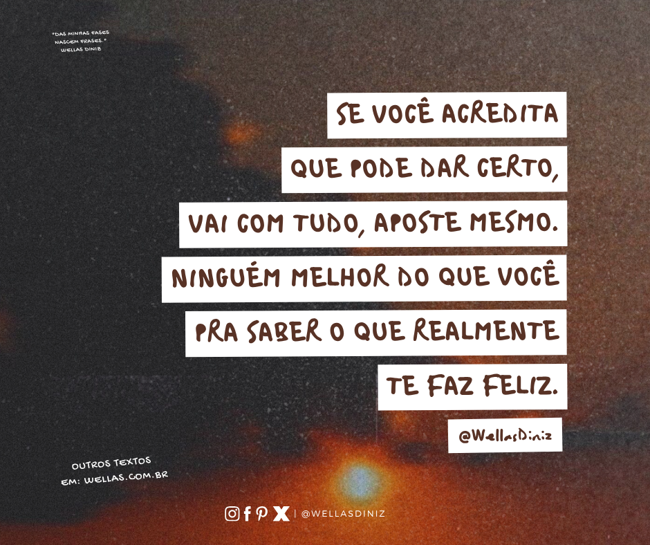 Explore a magia das palavras com a coleção de frases de Wellas Diniz para suas redes sociais. Inspire-se e compartilhe!